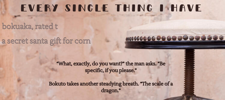 “Welcome, traveller,” he says, and the way his silken voice travels across the store pushes the last thoughts of the siren from Bokuto’s mind. “Do you require assistance today?”